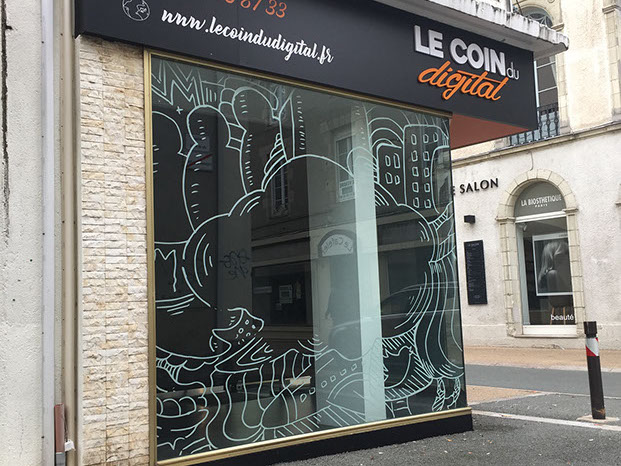 Réalisation de l'ensemble vitrophanie plus enseigne.